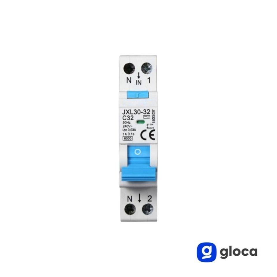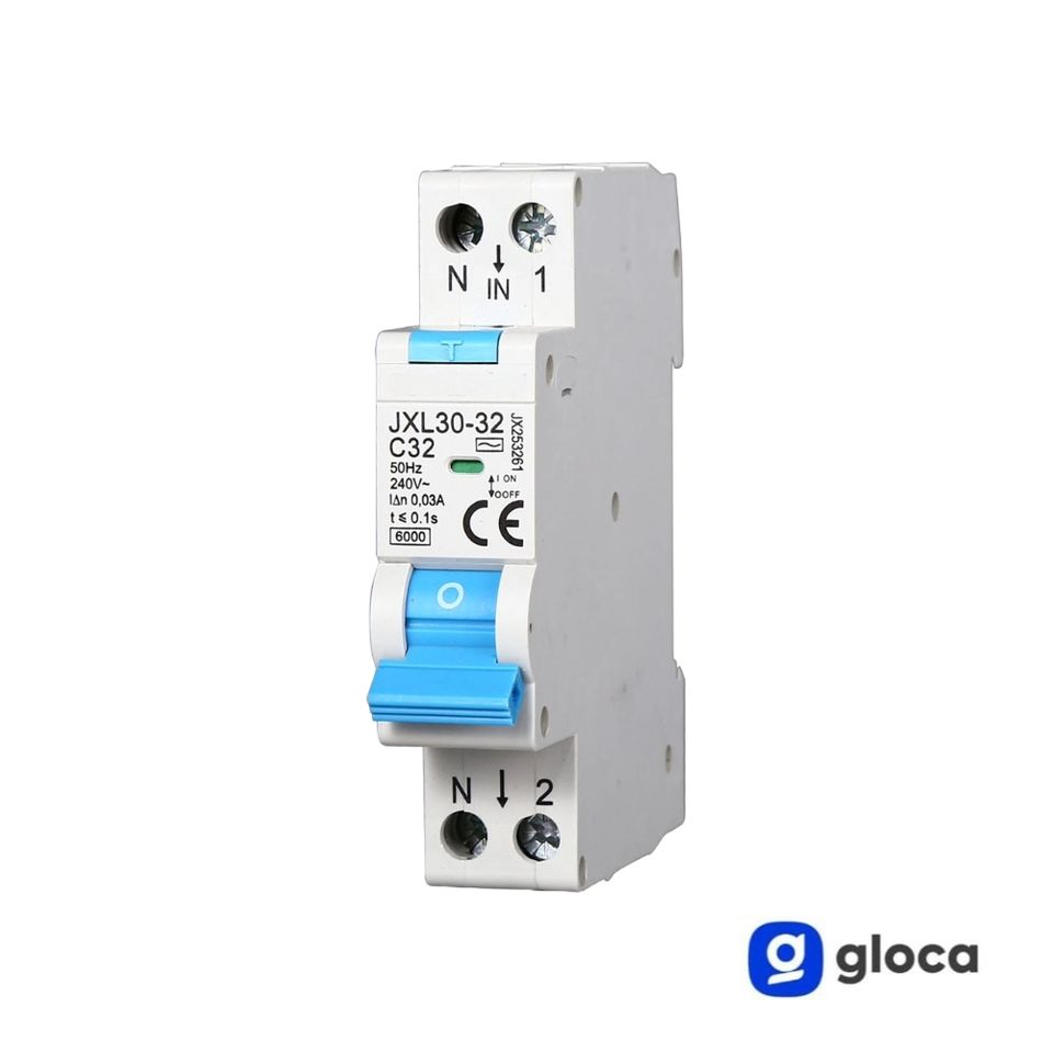 Disjoncteur miniature Gloca Rcbo 1P+N 32A 30mA 250V Courbe C Montage sur rail DIN
