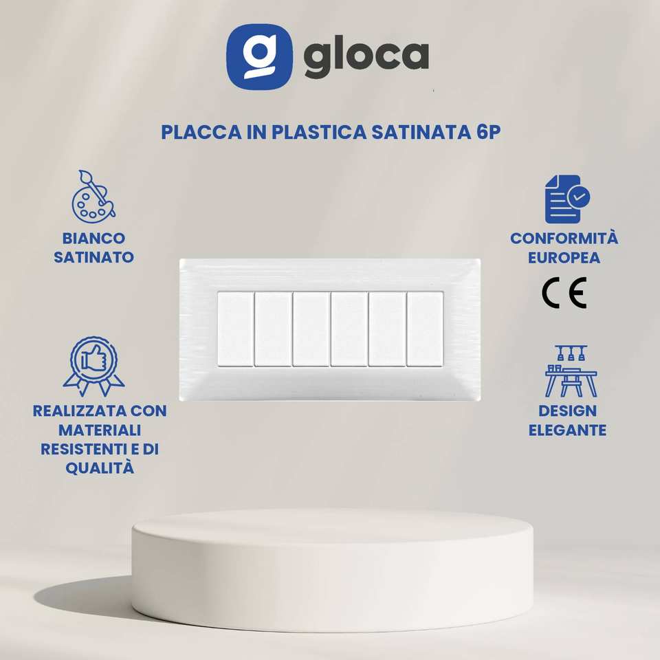 Prise de table Gloca en plastique, 6 prises, blanc satiné, lot de 2, usage résidentiel