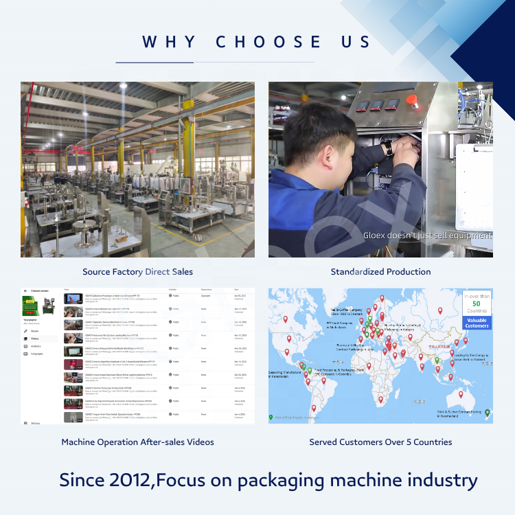 Machine d'emballage automatique horizontale grand format Gloex à 3 stations pour litière pour chat, nourriture pour chien, sachets/poches robustes