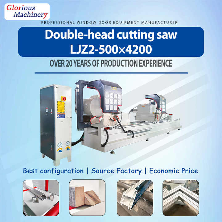 Machine de fabrication de fenêtres et portes en aluminium, PVC et UPVC automatique, contrôlée par PLC, avec scie de découpe de haute précision et découpeuse de profilés