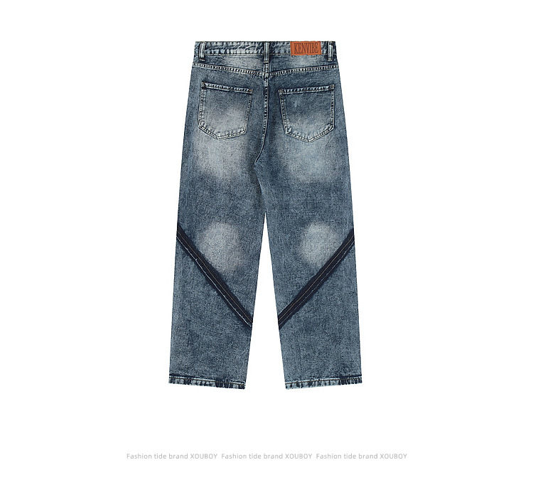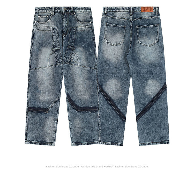 Glory Jean pour homme, entièrement personnalisé, bleu délavé, avec grandes poches, style patchwork, coupe ample, grande taille