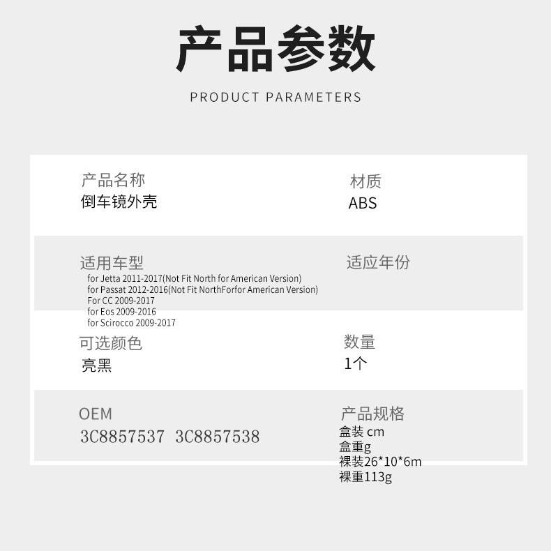 Boîtier de rétroviseur noir brillant pour Volkswagen Jetta Mk7 Magotan Passat Cc Scirocco, matériau Abs, ensemble complet gauche droit