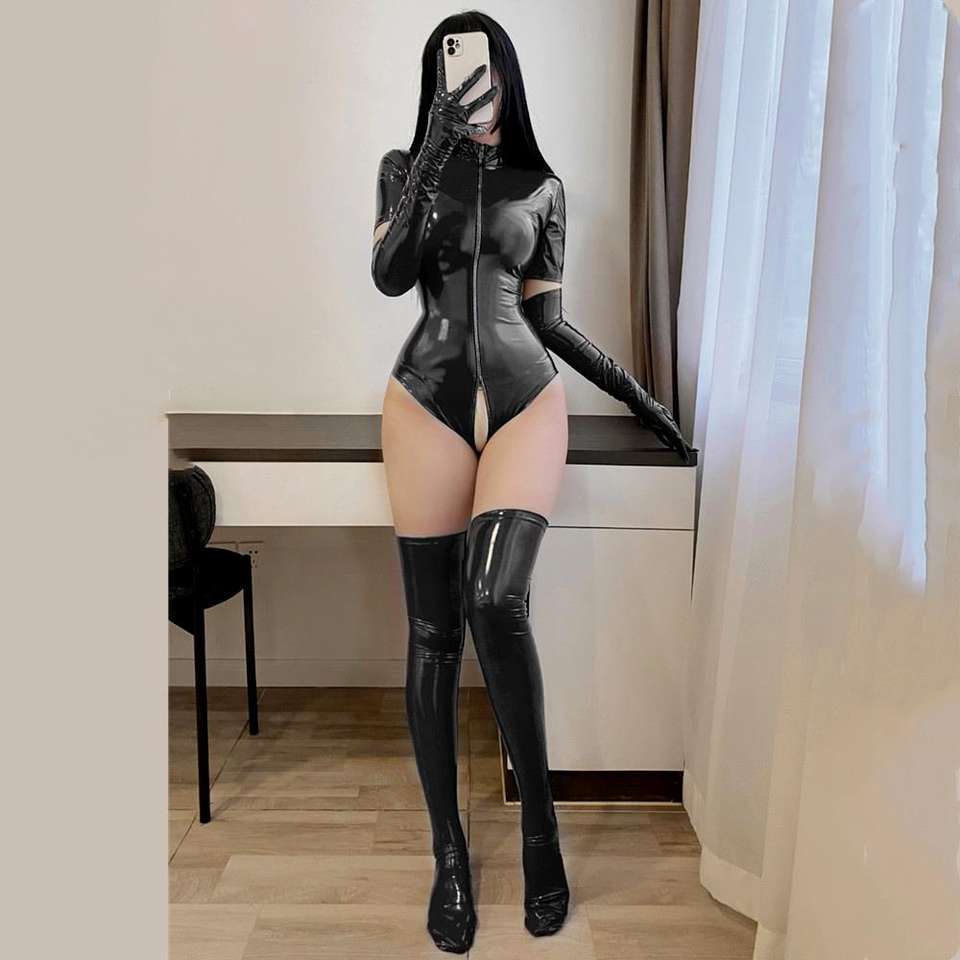 Brillant Double fermeture éclair ouvert entrejambe PVC Catsuit femmes en cuir Sexy Club combinaison body ensemble Costume érotique pour Dancin
