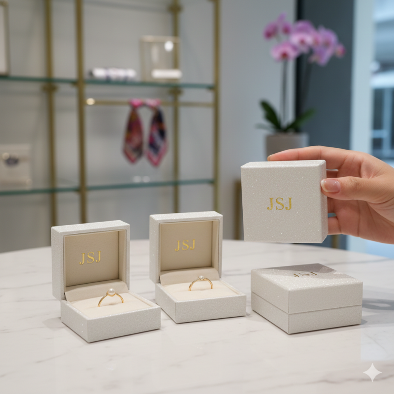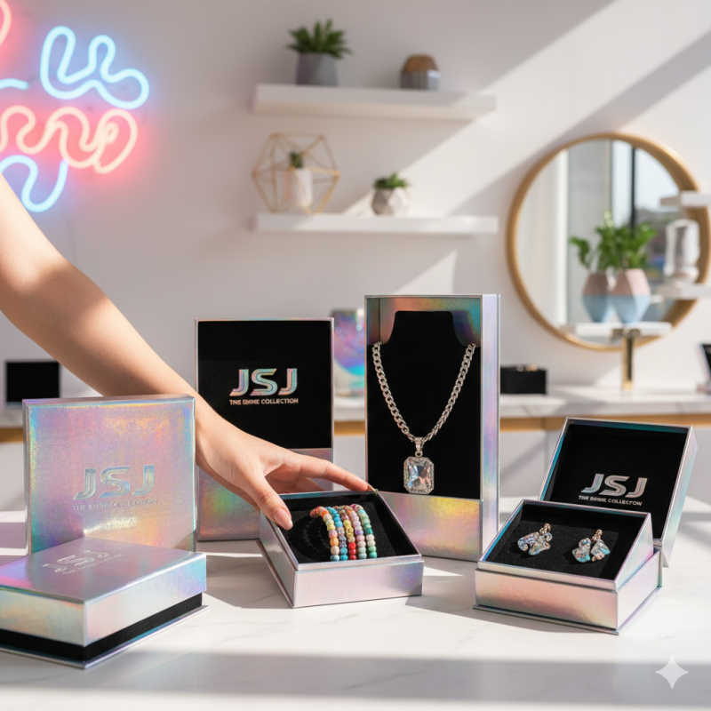 Boîte à bijoux en papier laminé finition brillante pour bijoux de mode, expédition en gros, emballage postal, boîte cadeau en carton rigide