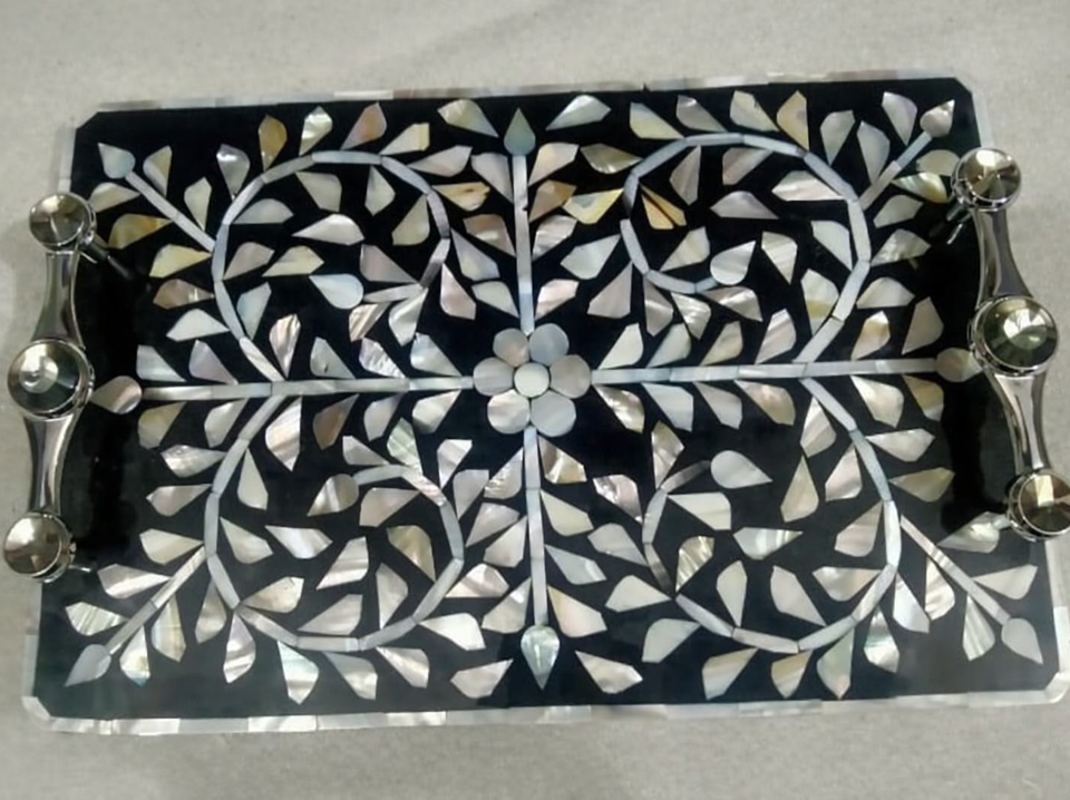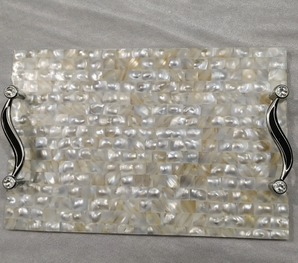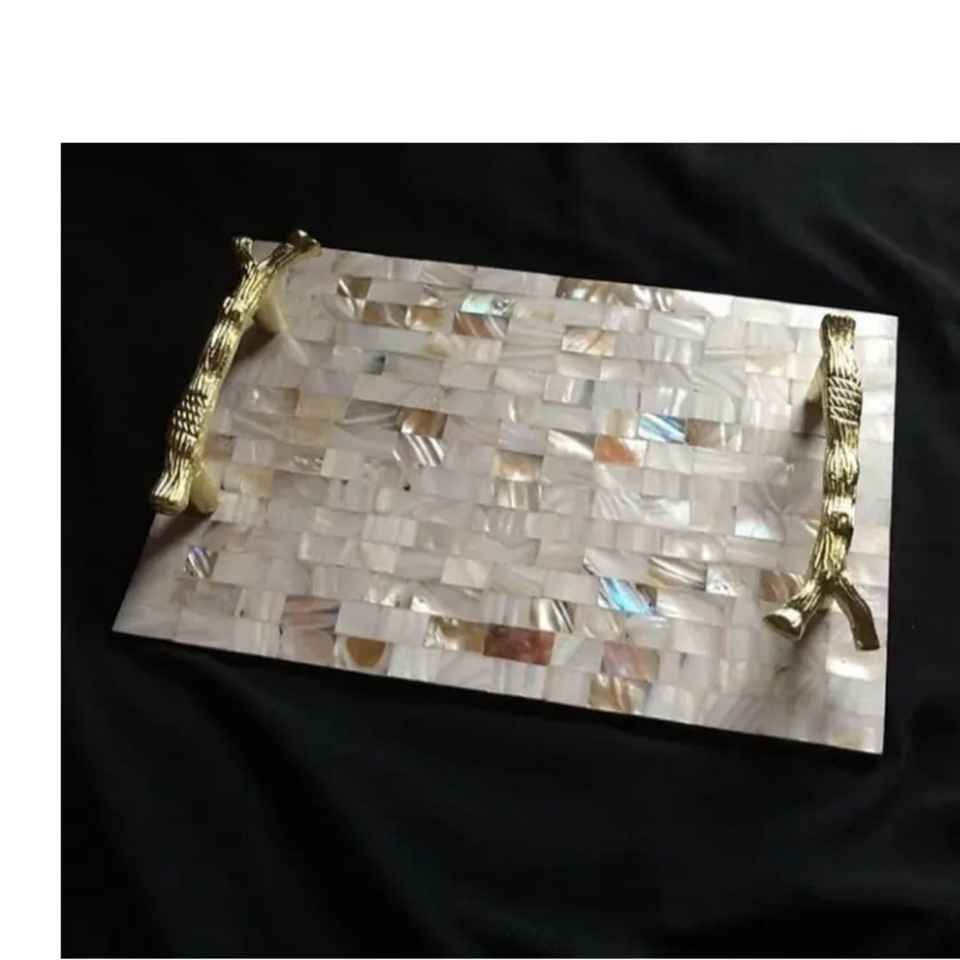 Plateaux de service et de rangement en nacre finition brillante avec poignées, personnalisés, faits main, de luxe, pour mariage, Ramadan, Aïd, tendance