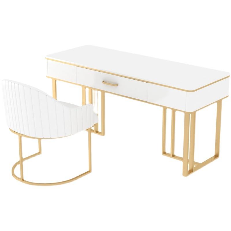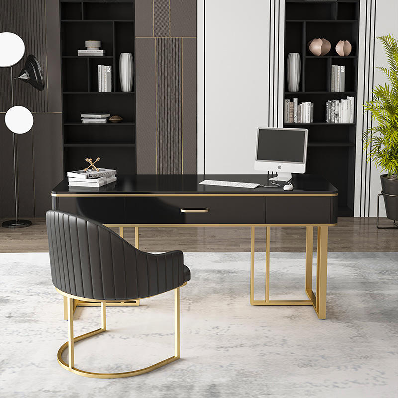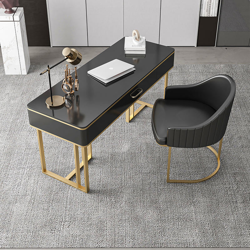 Bureau de table brillant Mobilier de bureau en cuir et fer avec pieds en métal doré Bureau d'ordinateur pour la maison ou le bureau