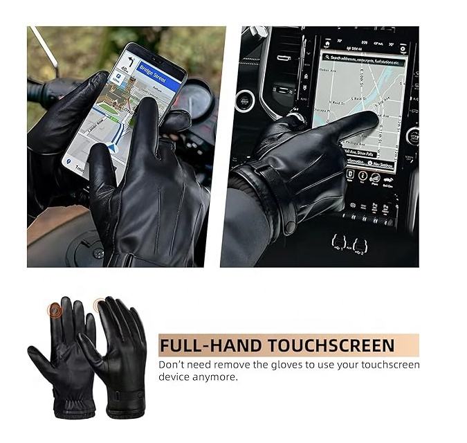 Gants pour hommes Hiver Écran tactile Extérieur Chaud Linner Imperméable Gants en cuir noir du Pakistan