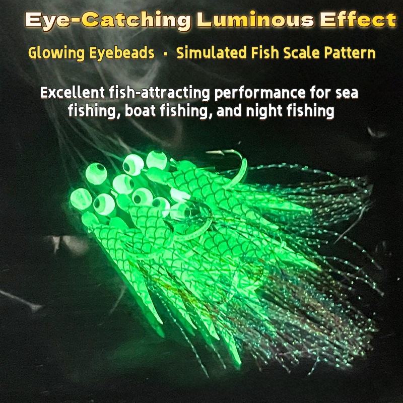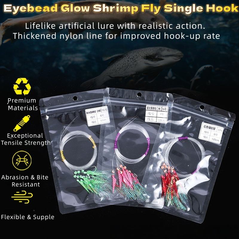 Motif d'écailles de poisson luisant tête noire jaune Croaker mouche de crevettes crochet unique avec ligne de leader de 1.2 mètres pour la pêche en mer bateau de pêche