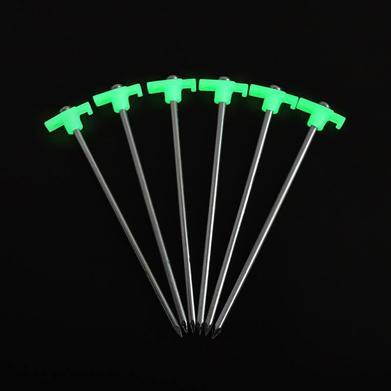 Piquets de tente phosphorescents 8x250mm, clous de sol métalliques pour camping, plage, fixation de bâche, piquets coupe-vent