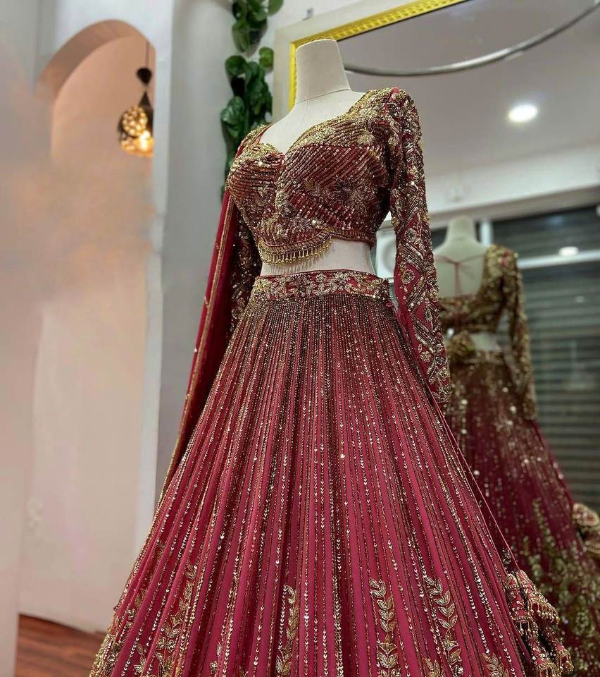 Glow& Shine Winter Faux Fur Embroidered Georgette Silk Traditional Bride Maid Wedding & Party Wear Lehenga Choli Set