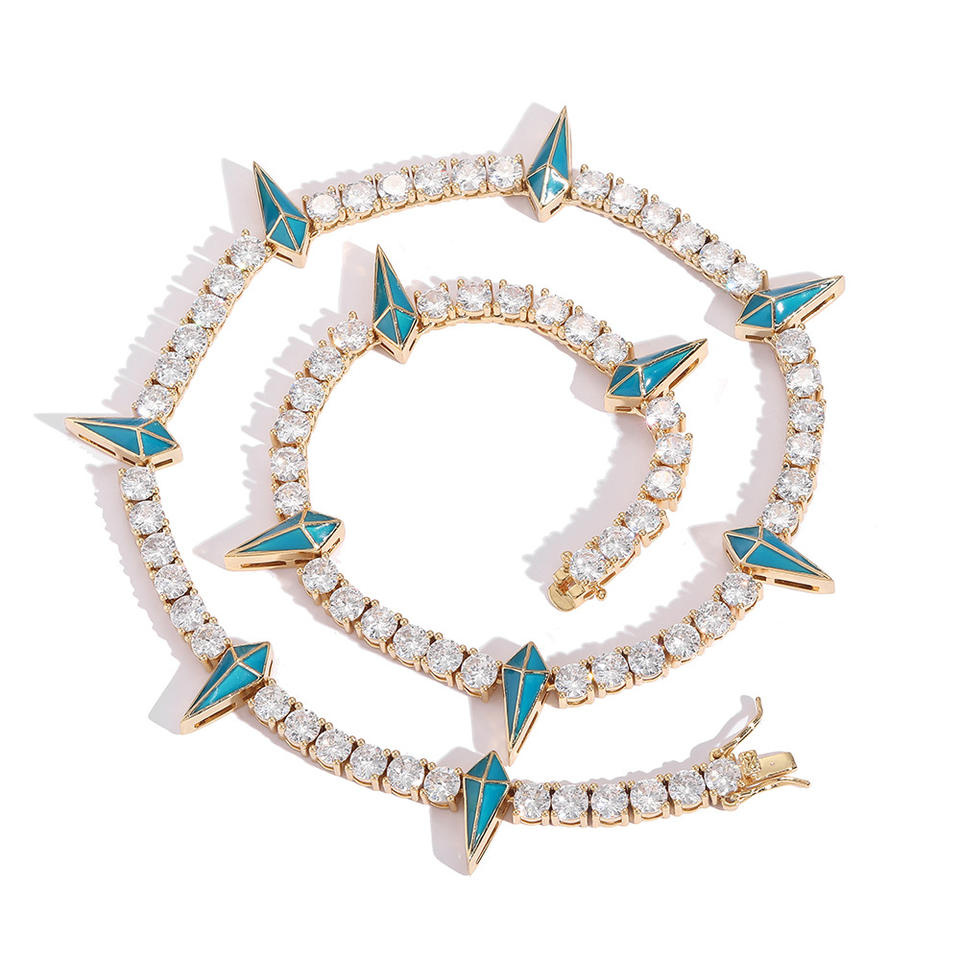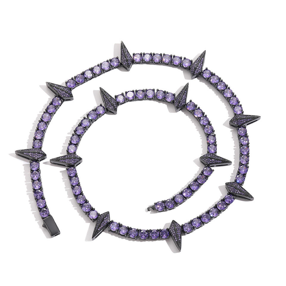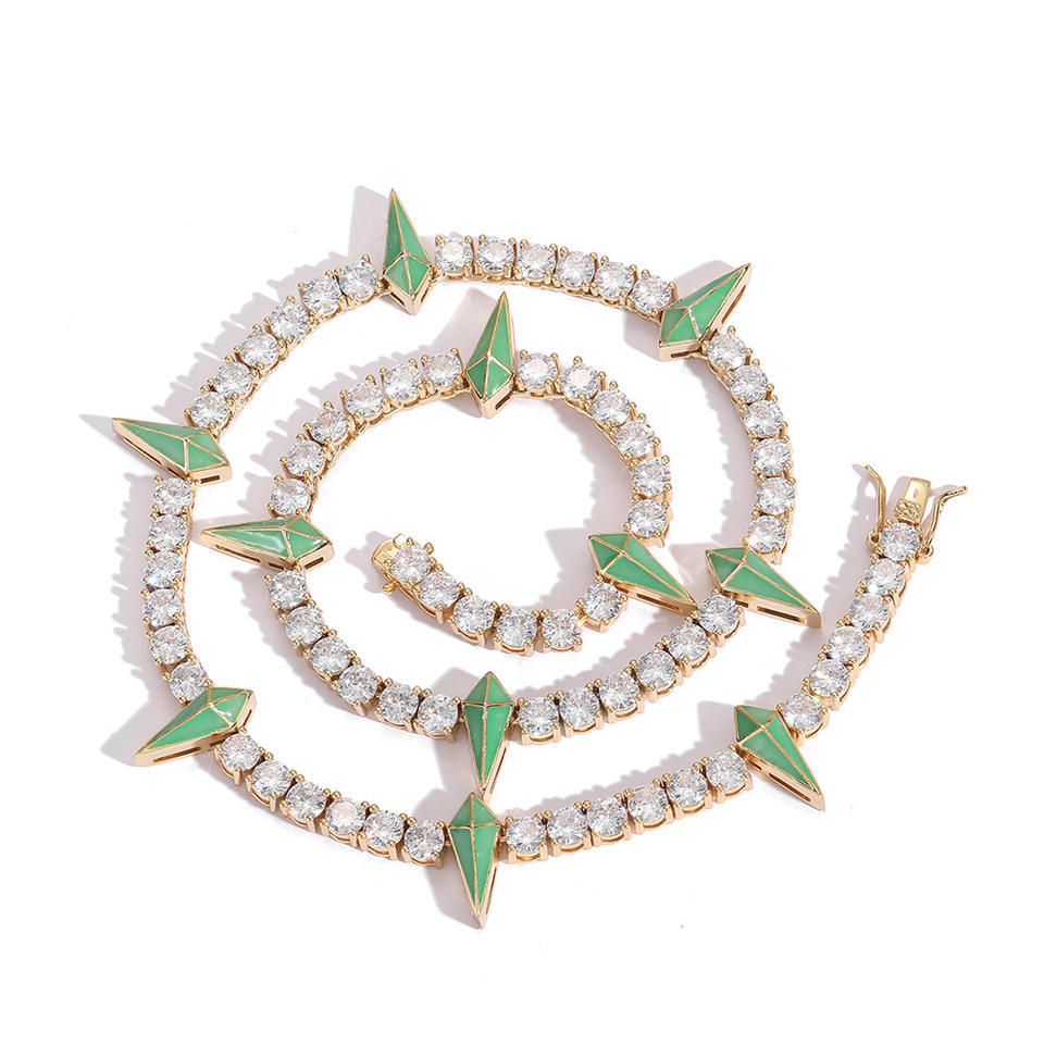 Chaîne à clous qui brille dans le noir Catena Spike Gioielli Collier Tennis 5mm avec zircone cubique plaqué or 5A