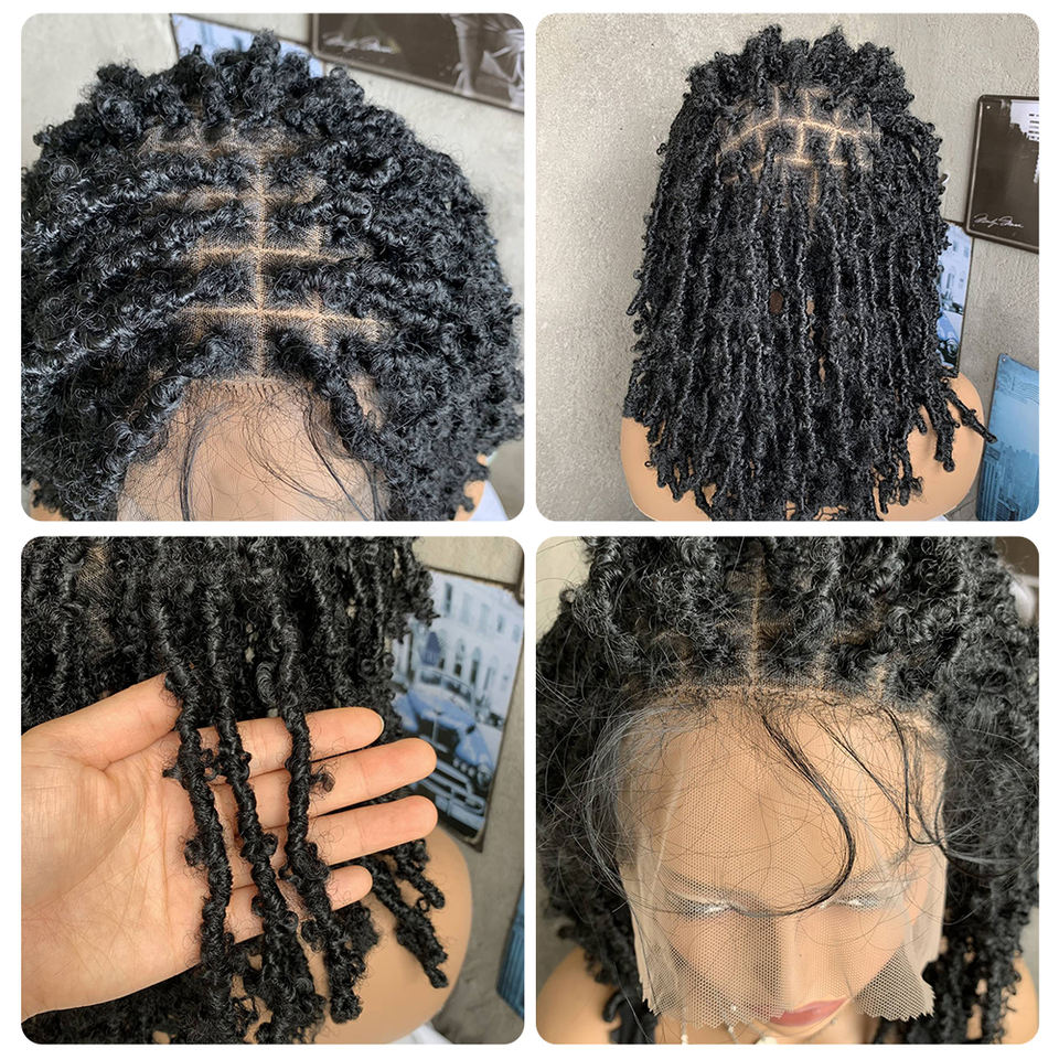 Perruque tressée sans colle Butterfly Locs, entièrement en dentelle HD transparente, 14 pouces, pré-bouclée, torsadée à la main, pour femmes noires