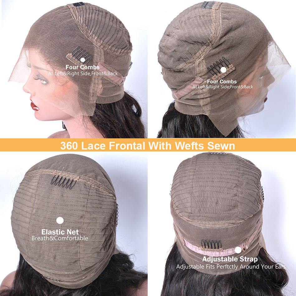 Perruque de Cheveux Humains Sans Colle Dentelle Frontale 360 Pré-Coupée, InvisiDentelle 360 Sans Colle