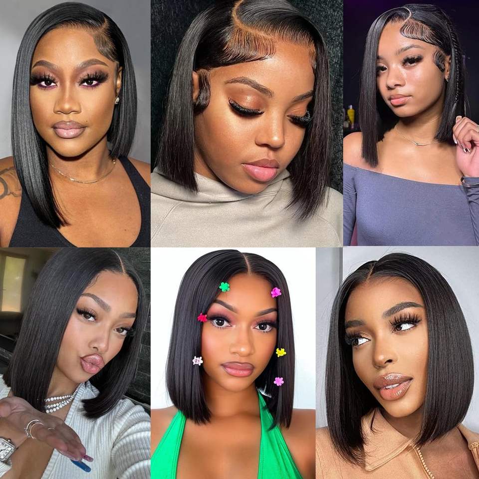 Perruque Courte Bob Carré Colorée Sans Colle avec Dentelle Frontale Brésilienne et Péruvienne pour Femmes Noires, Dentelle Frontale Colorée avec Cheveux Humains
