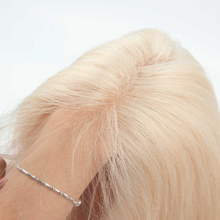 Perruque en cheveux humains blonds, sans colle, pré-épilée, pré-décolorée, douce, vierge, européenne, avec cuticules alignées, pour femmes blanches
