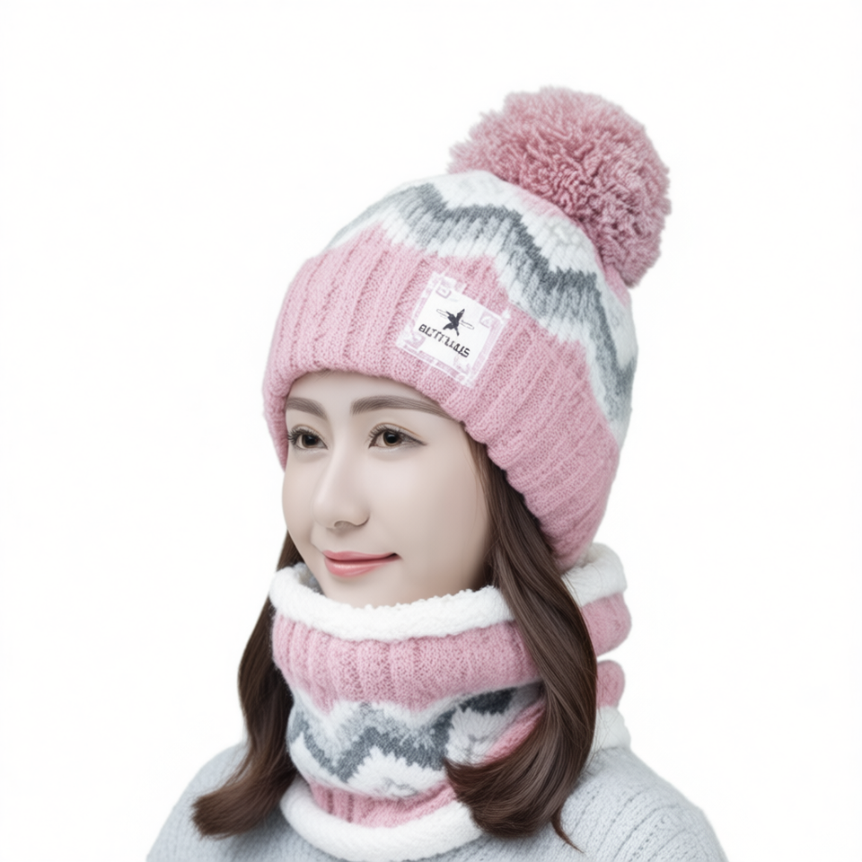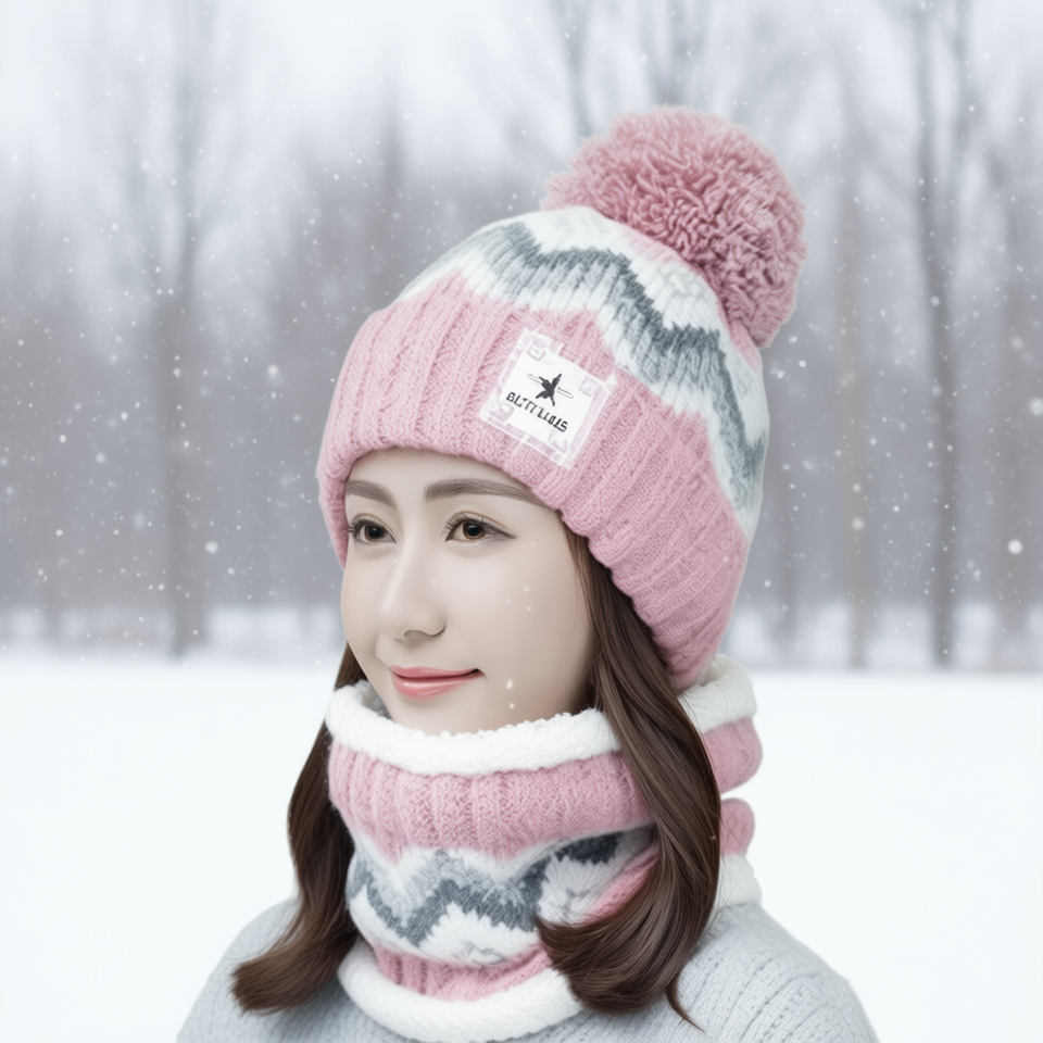 Ensemble bonnet et écharpe en tricot Go-033, 2 pièces, motif géométrique teint en fil, acrylique, chaud pour l'hiver, taille moyenne adulte