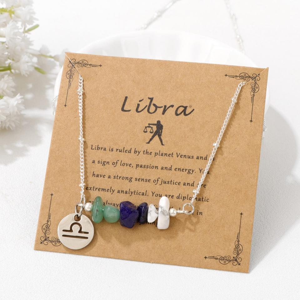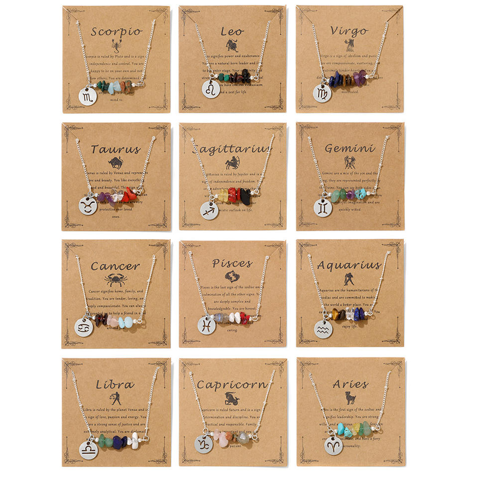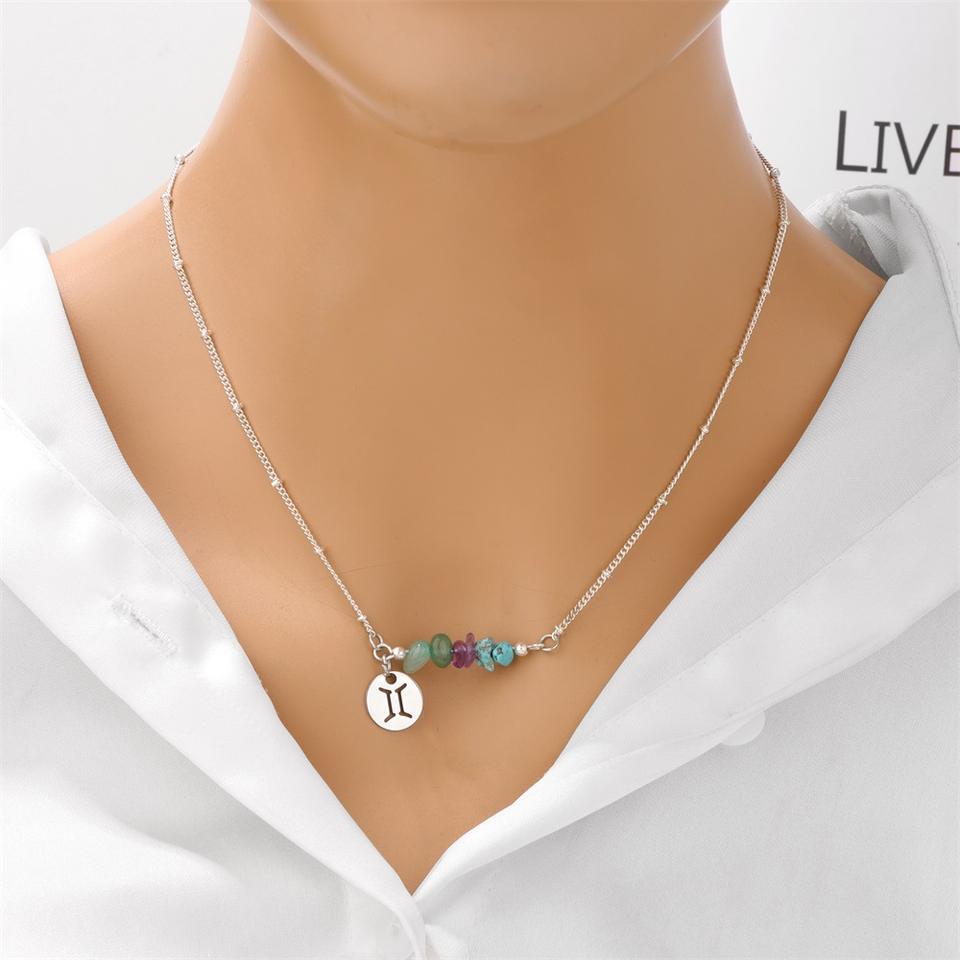 Go Party 12 Colliers Horoscope Collier du zodiaque en acier inoxydable pour femmes Colliers à pendentifs en pierre naturelle et perles de pierre concassée