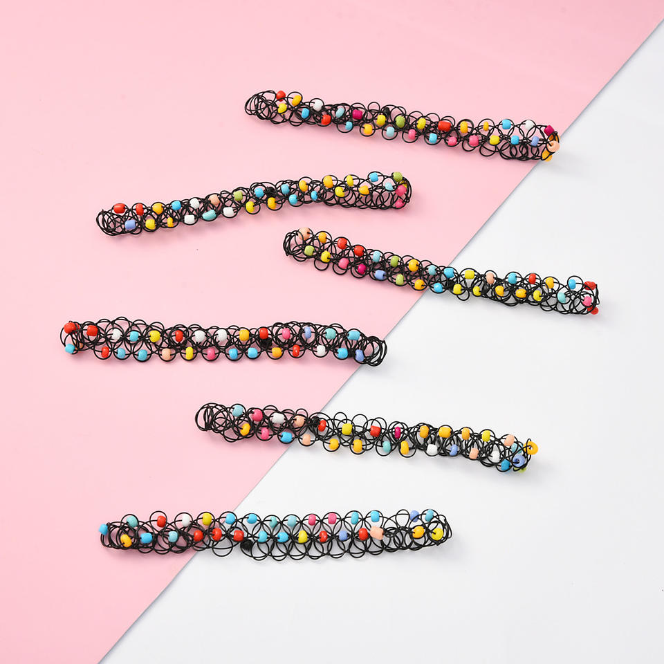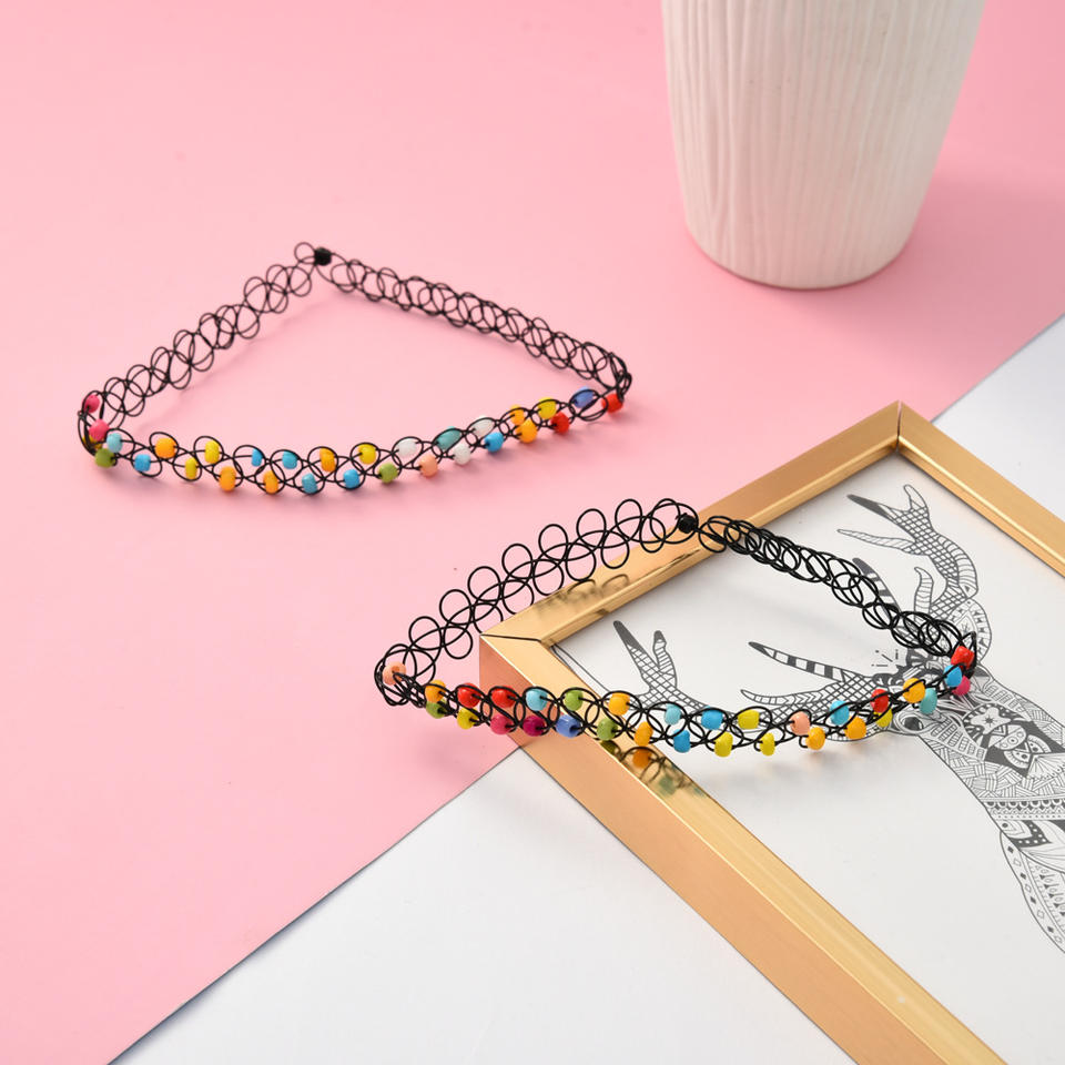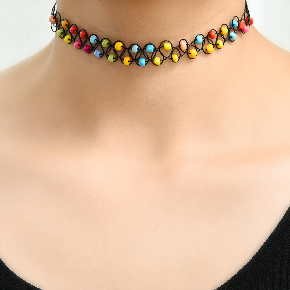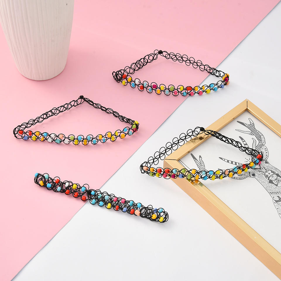 Ensemble de colliers de perles colorées pour femmes, 12 pièces, collier élastique extensible, ligne de poisson, collier de tatouage, colliers ras du cou
