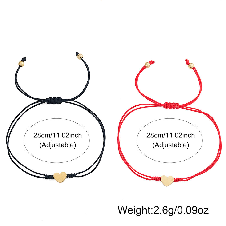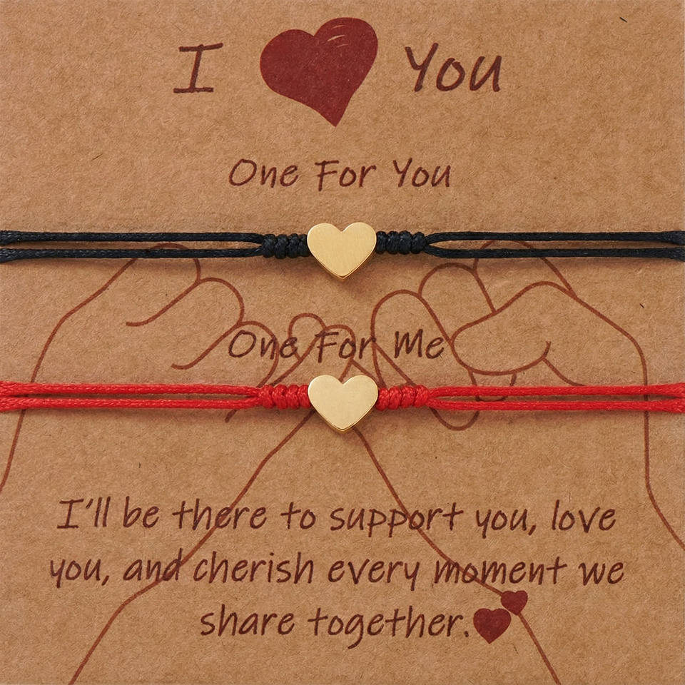 Bracelet de couple Go2boho pour la Saint-Valentin, charme en forme de cœur, cordon rouge et noir, bijoux réglables pour les amoureux