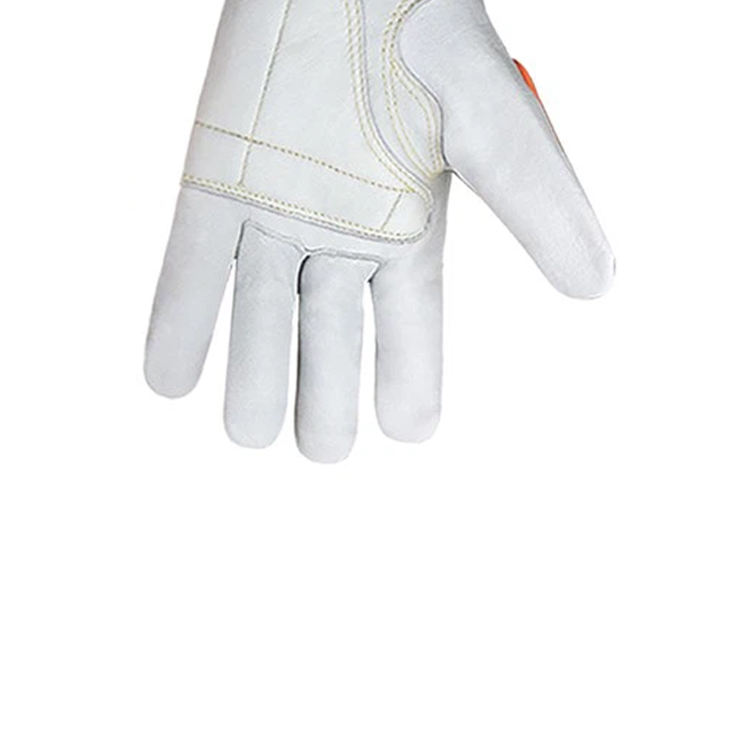 Gants de travail en cuir de chèvre assemblé avec dos en tissu coton interlock respirant, gants de conduite en cuir confortables pour la sécurité des mains