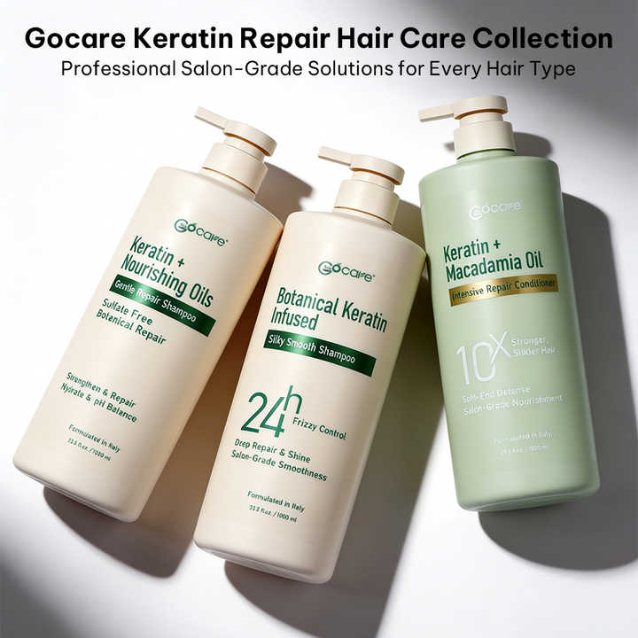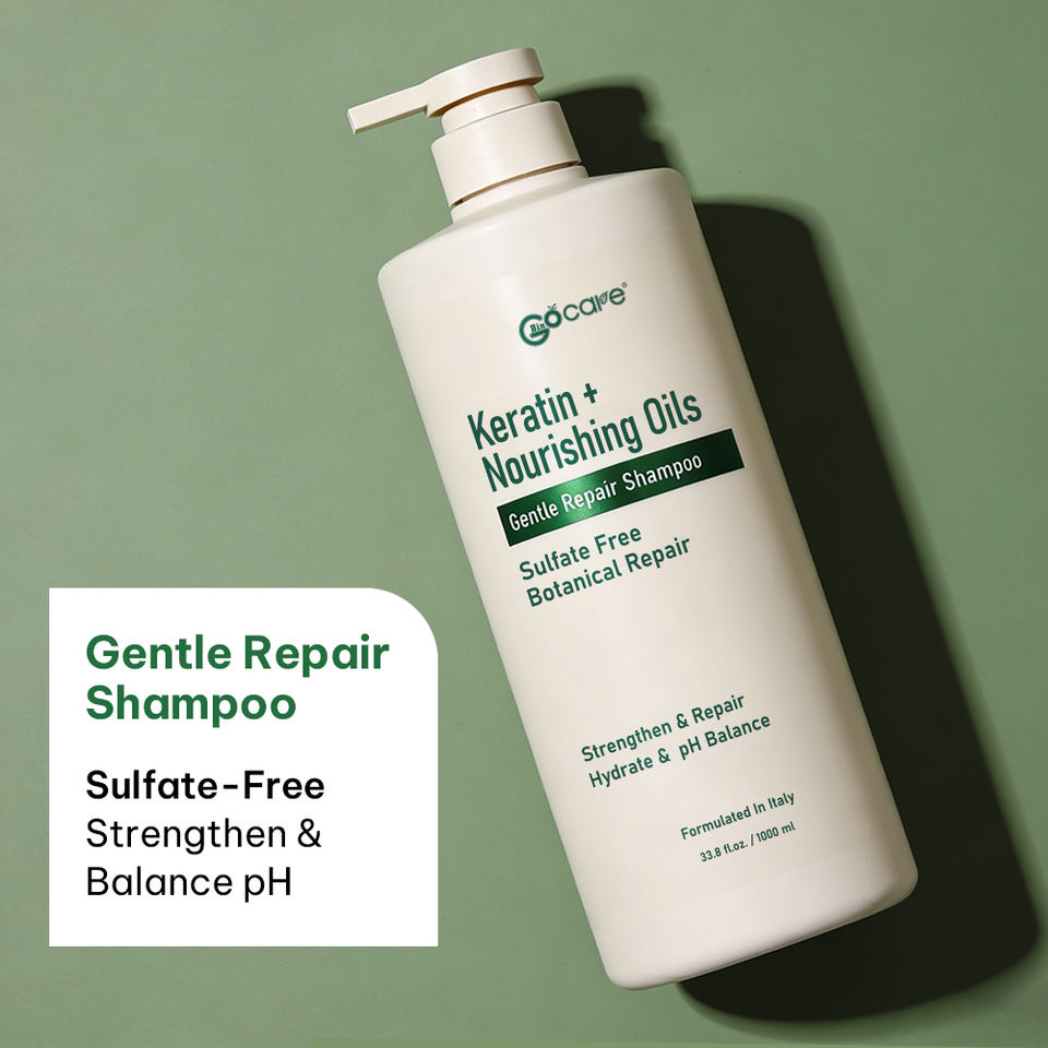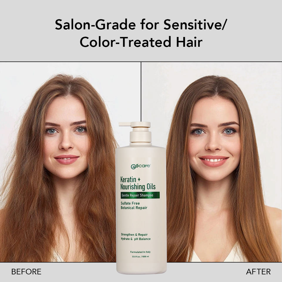 Shampooing doux sans sulfate Gocare Private Label, formule italienne, kératine, huiles naturelles, soin des cheveux pour cuir chevelu sensible