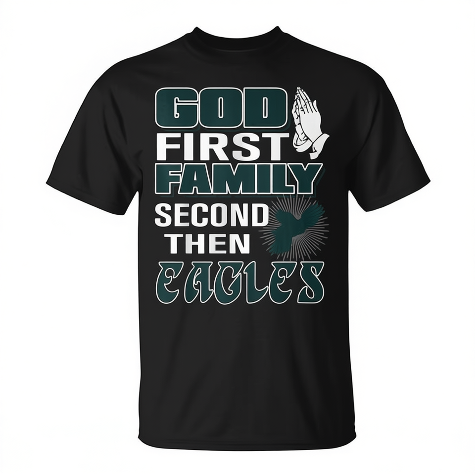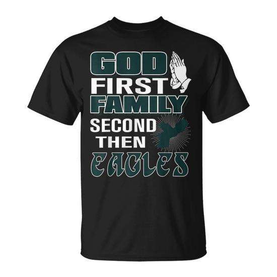 God First Family Second Then Eagles T-Shirt Adult Unisex Crew Neck Short Sleeve Silk Screen Printing Sports And Games