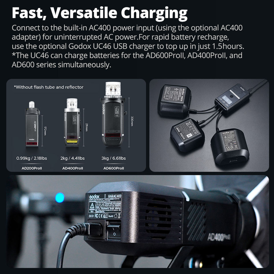 Godox AD400Pro II Flash d'extérieur tout-en-un 400Ws Li-on Battery TTL HSS Flash Light avec système X sans fil 2.4G intégré