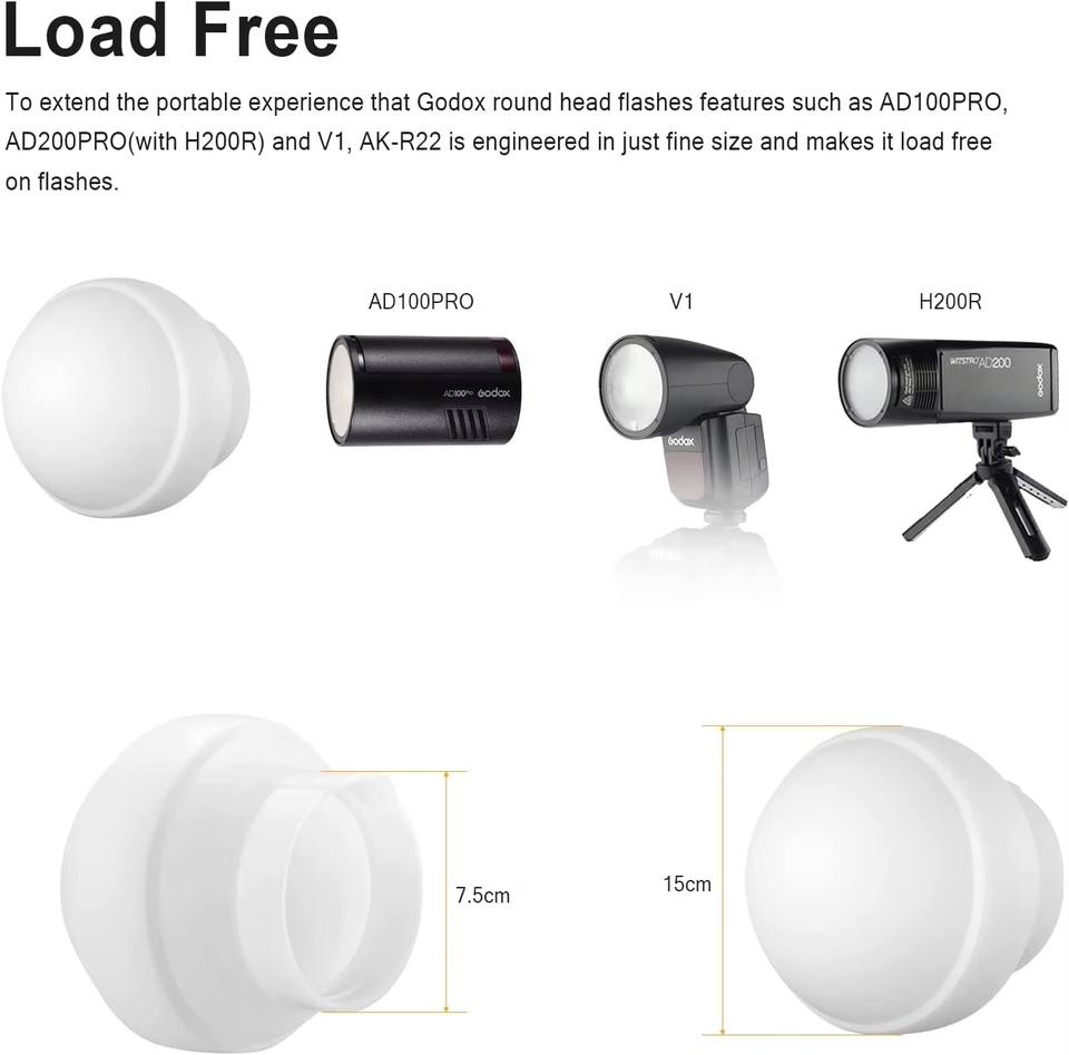 Kit de dôme de diffusion en gel de silice Godox AK-R22 pour Godox V1 AD100Pro AD200PRO Ajouter H200R