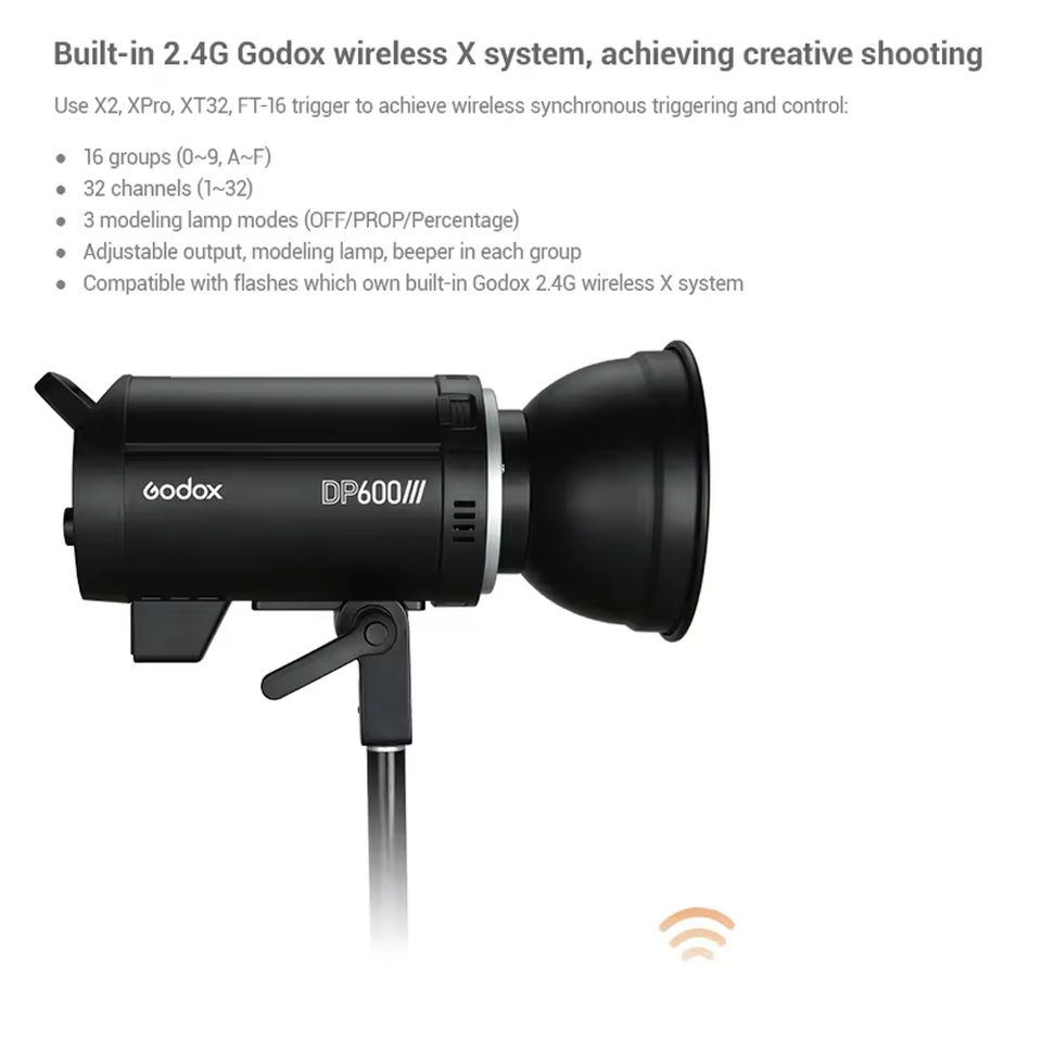 Flash de studio Godox DP400III 400W 2.4G sans fil avec système X, lumière stroboscopique 5600K, portée de flash 28-105 mm pour la photographie de mariage, 84g