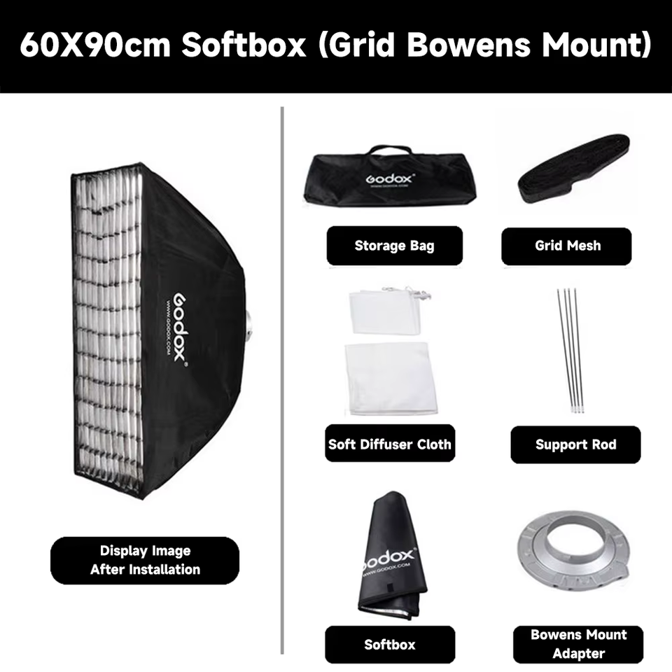 Godox SL100D Photo Dual LED Light Professional Video Studio Light avec 2.8m Stand 60*90cm Softbox QR-P60T Soft Box Lighting Kit