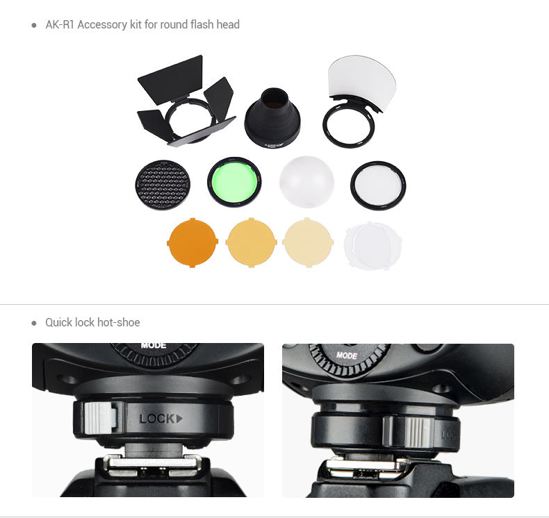 Nom:Godox TTL Li-ion Tête Ronde Caméra Flash V1C/N/S/F/O/P