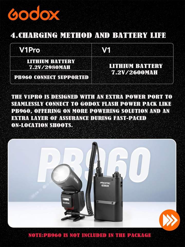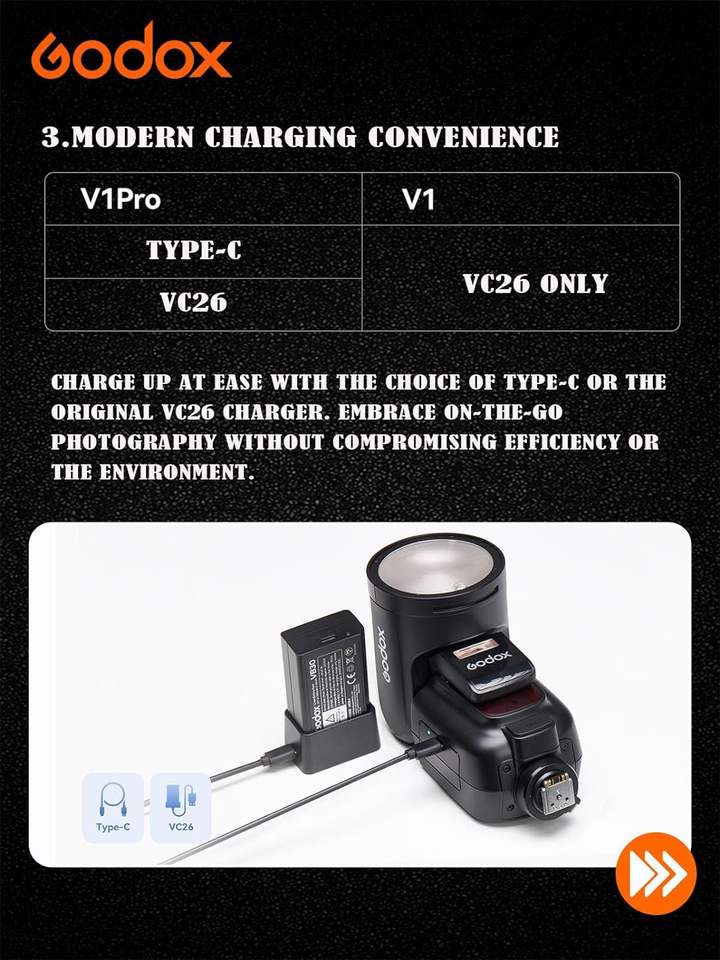 Flash Godox V1 pour appareil photo PRO-C compatible avec les appareils photo Canon EOS 2.4G sans fil + Mode Flash M/TTL Flash détachable sous Flash Speedlite