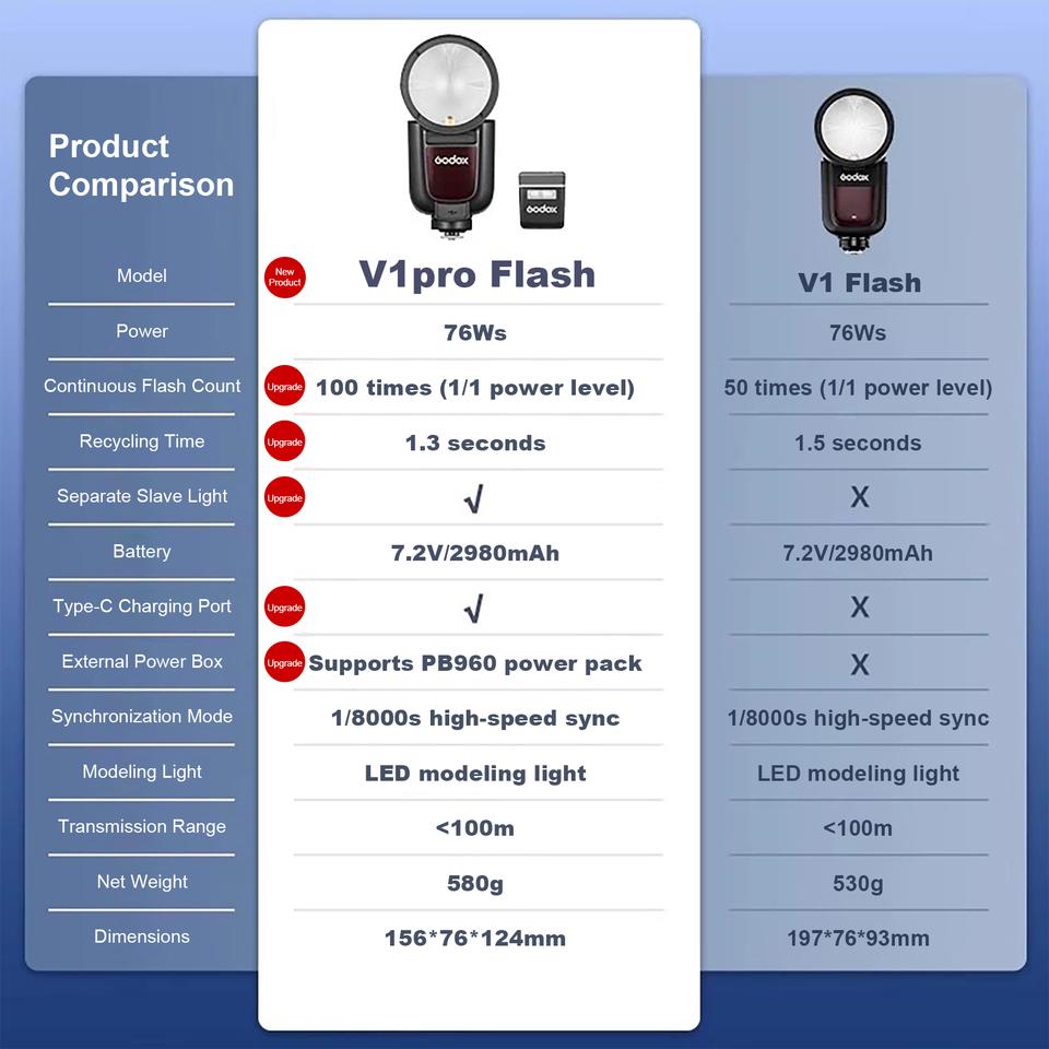 Godox V1 Pro V1Pro TTL Li-ion Tête Speedlite Flash Transmission Sans Fil Pour Appareils Photo Canon Nikon Sony Fuji Olympus
