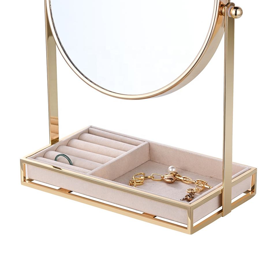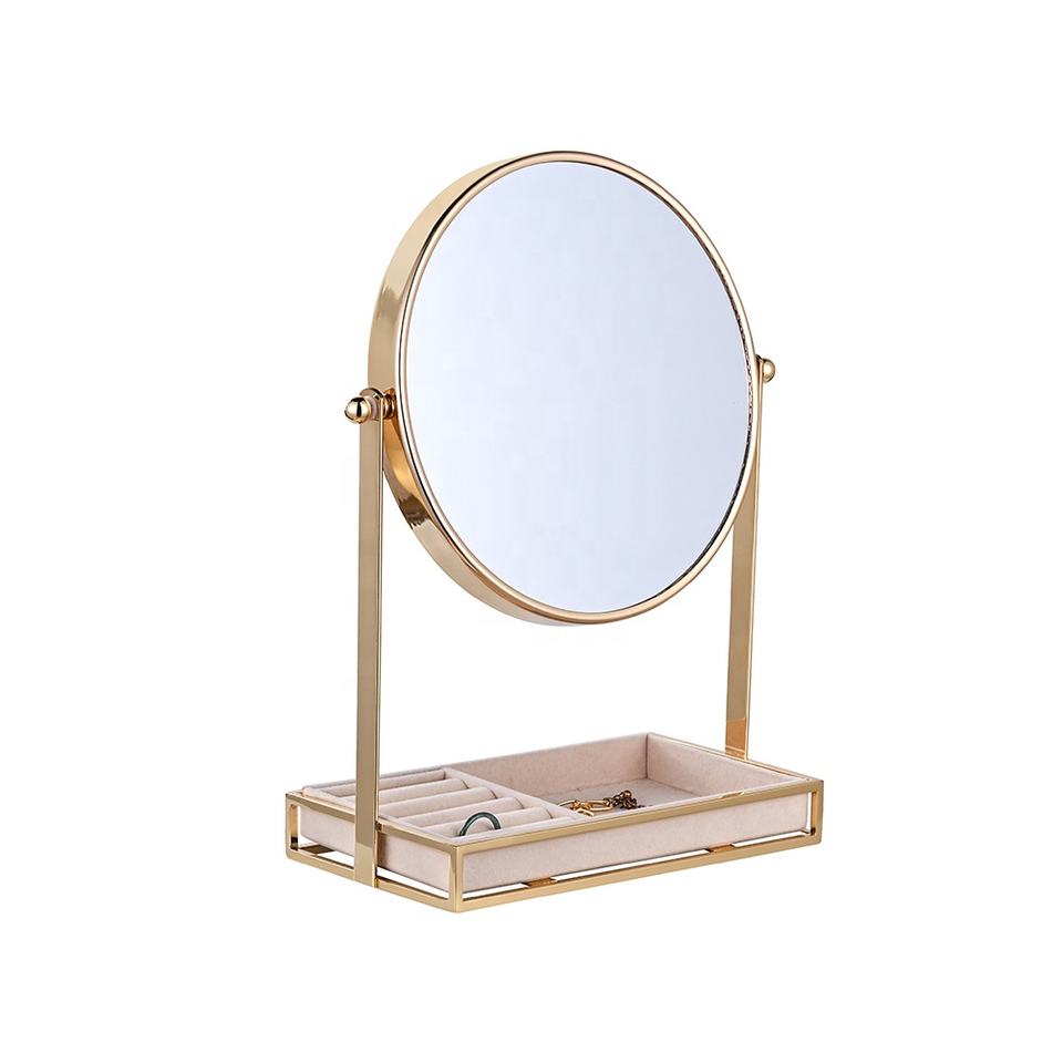 Miroir Cosmétique de Table Gold 7 Pouces pour Salle de Bain, Miroir de Coiffeuse Grossissant 7x avec Rangement pour Bijoux GMJ784