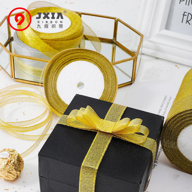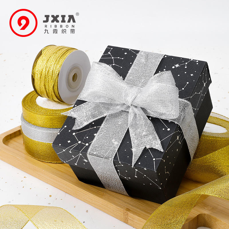 Gold And Silver Glitter Ribbon Spool 0.3 5Cm Metallic For Gift Box Cake Decoration Home Textile Use