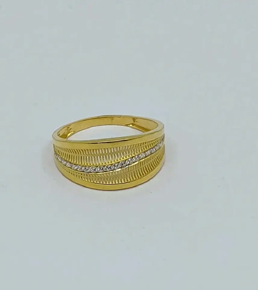 Bague en or avec pierre diagonale, finition texturée, élégante, large, pour mariage et anniversaire, pour homme et femme
