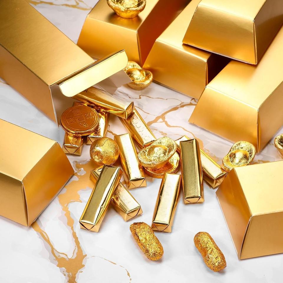 Boîte cadeau en forme de lingot d'or, boîte à dragées en papier doré, boîte à dragées en forme de brique de trésor pour fête sur le thème du pirate ou du casino