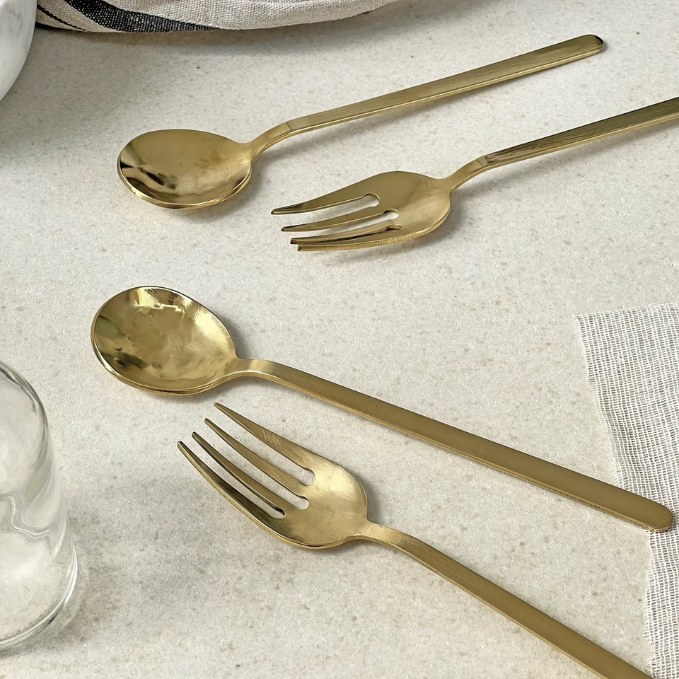 Ensemble de couverts en laiton doré en forme de conception pour décor de table à manger de fête de mariage cuillère à couverts en acier miroir
