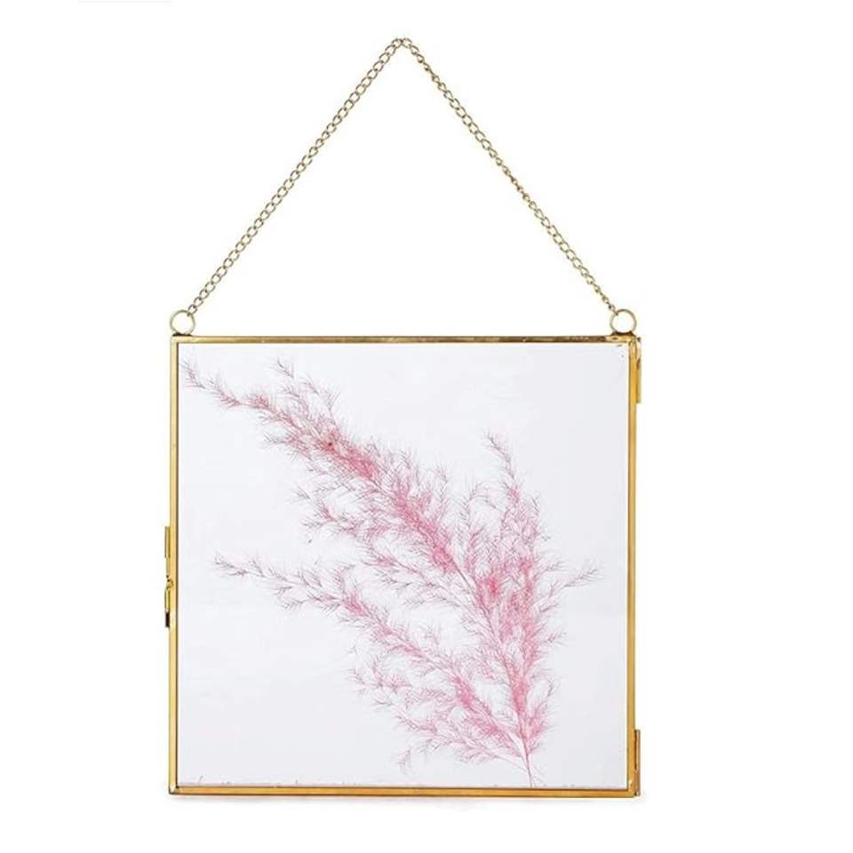 Cadre photo en verre suspendu en laiton doré avec chaîne 4x6 Cadre photo flottant double face pour fleurs pressées Décoration de mariage et mur