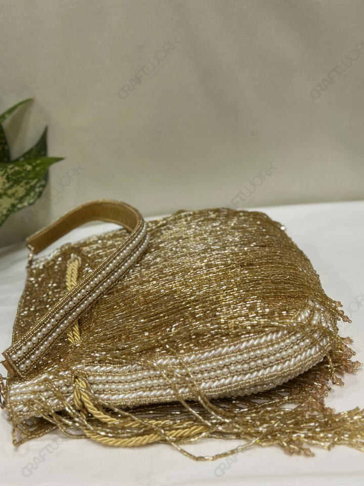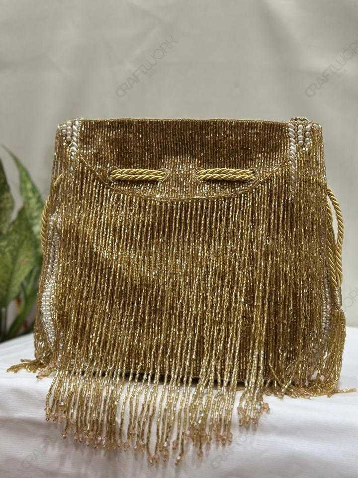 Sac à main doré à franges cascade avec des brins à pointes de cristal, accessoire de déclaration pour les occasions festives