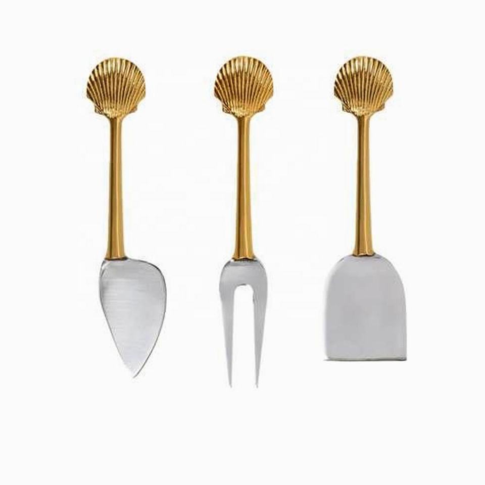 Ensemble de trancheuses à fromage dorées avec manche en feuille de palmier et épandeur de fromage rond et ensemble de sushi plaqué polonais caractéristique durable