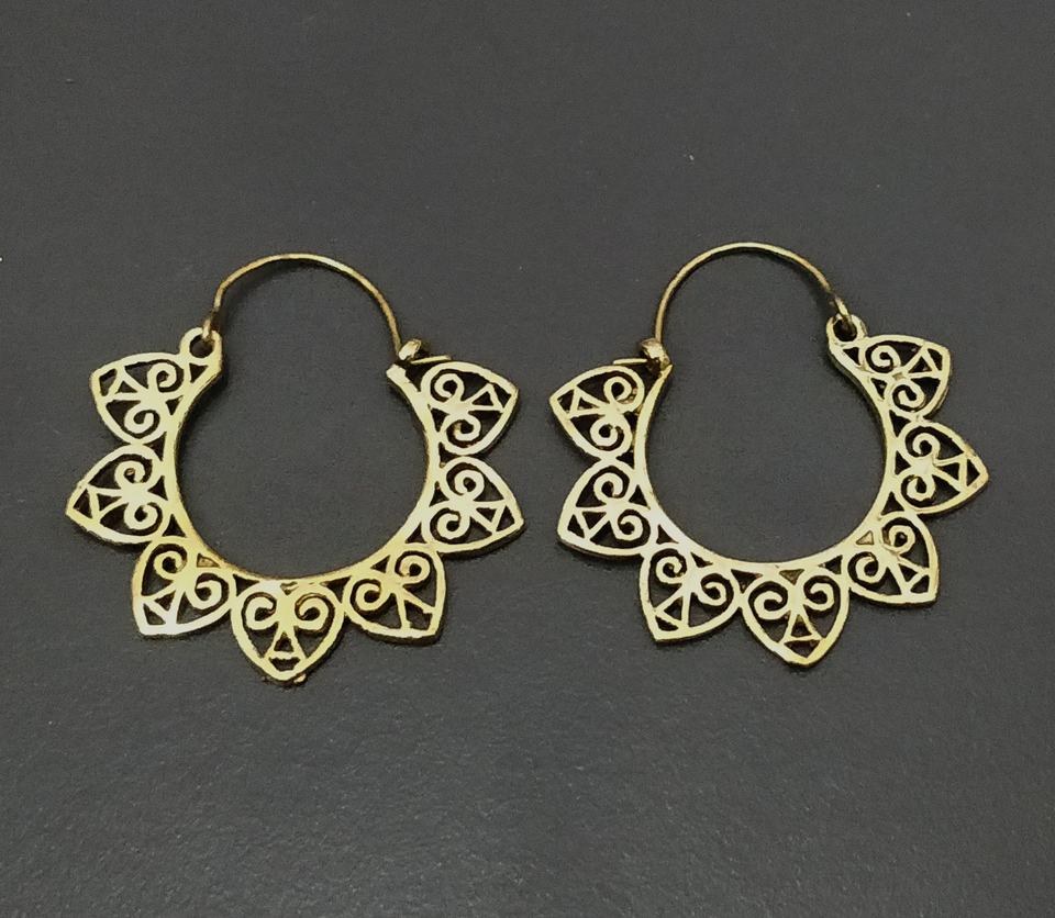 Boucles d'oreilles créoles en laiton couleur or motif floral bohème indien pour mariage, fiançailles, fête ou cadeau