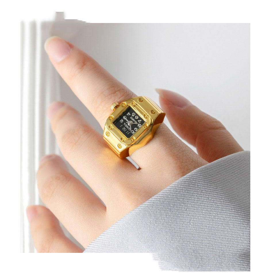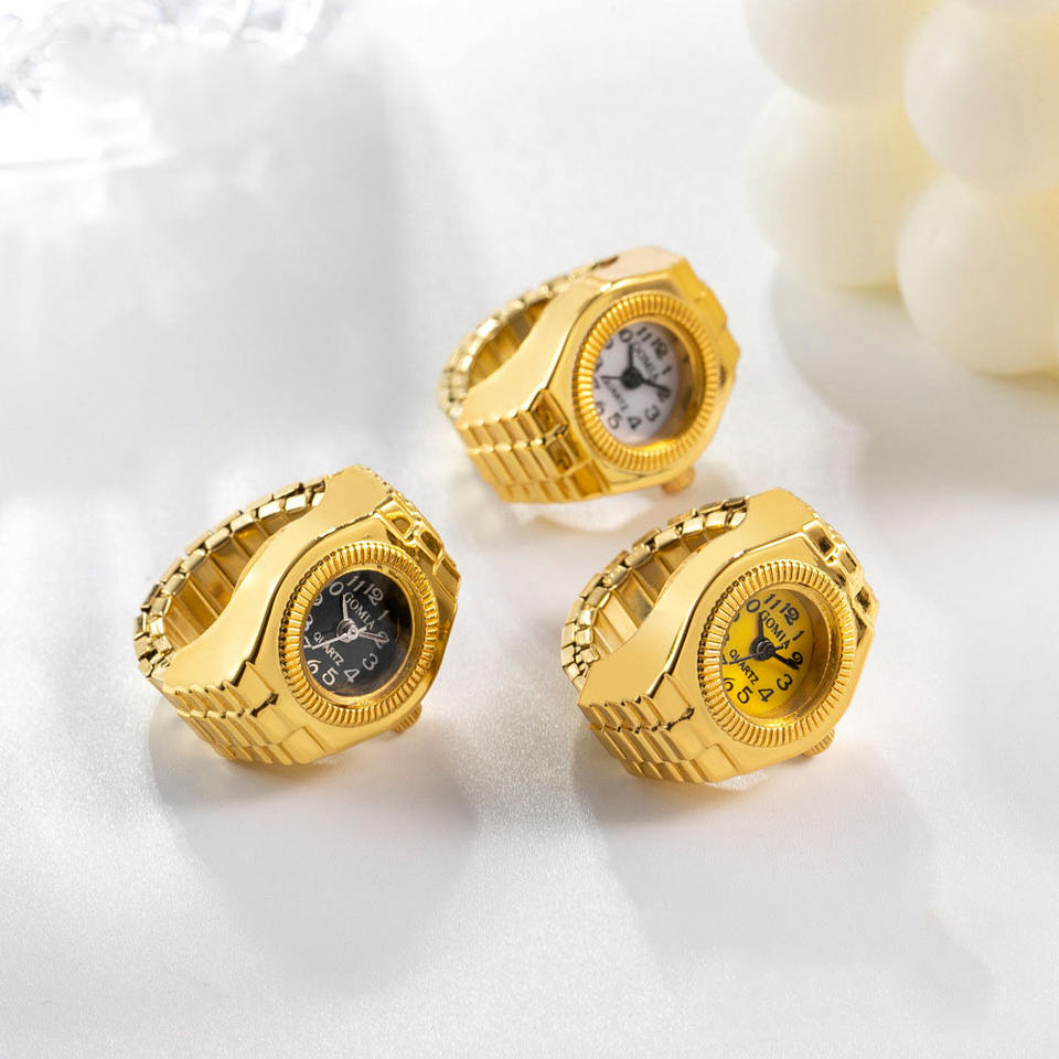 Yiwu KiKi Bague-montre quartz rétro couleur or pour couple, acier inox. mixte, vintage punk, mini bande élastique