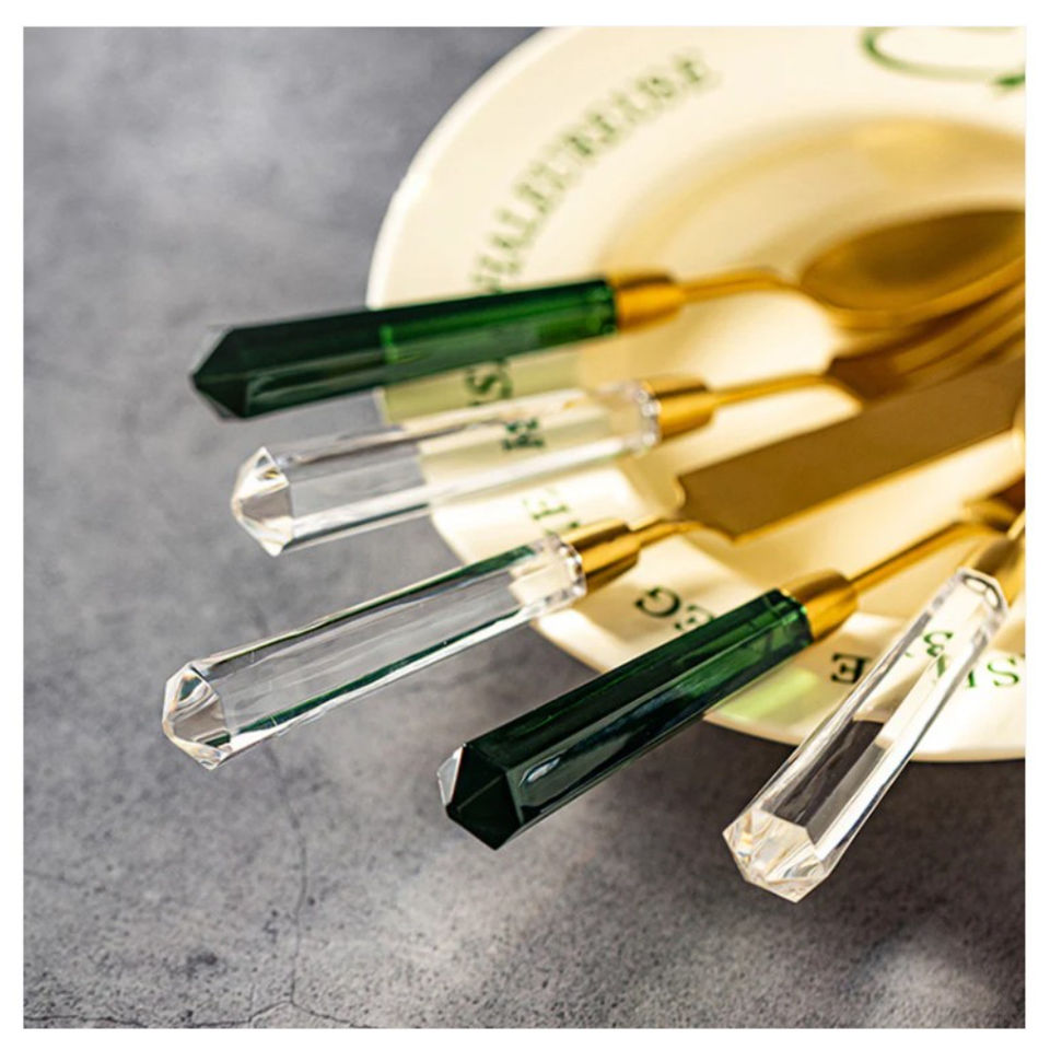 Gold Color Cutlery Set Well Polish High Quality Acrylic Handle Flatware Acrylic Handle Cutlery Flatware Set Acrylic Flatware Set