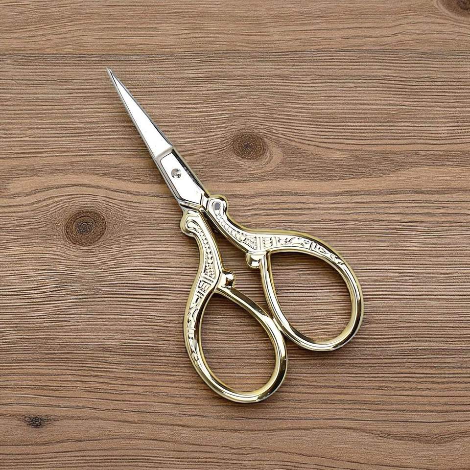 Ciseaux de broderie couleur or en acier inoxydable à lame droite, ciseaux de beauté pour le filage, fournisseur en gros de haute qualité pour le secteur de la beauté