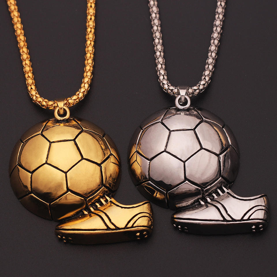 Charme de bijoux en forme de ballon de sport couleur or, collier de football, pendentif hémisphérique, baskets punk, souvenir, homme, garçon, jeu fou