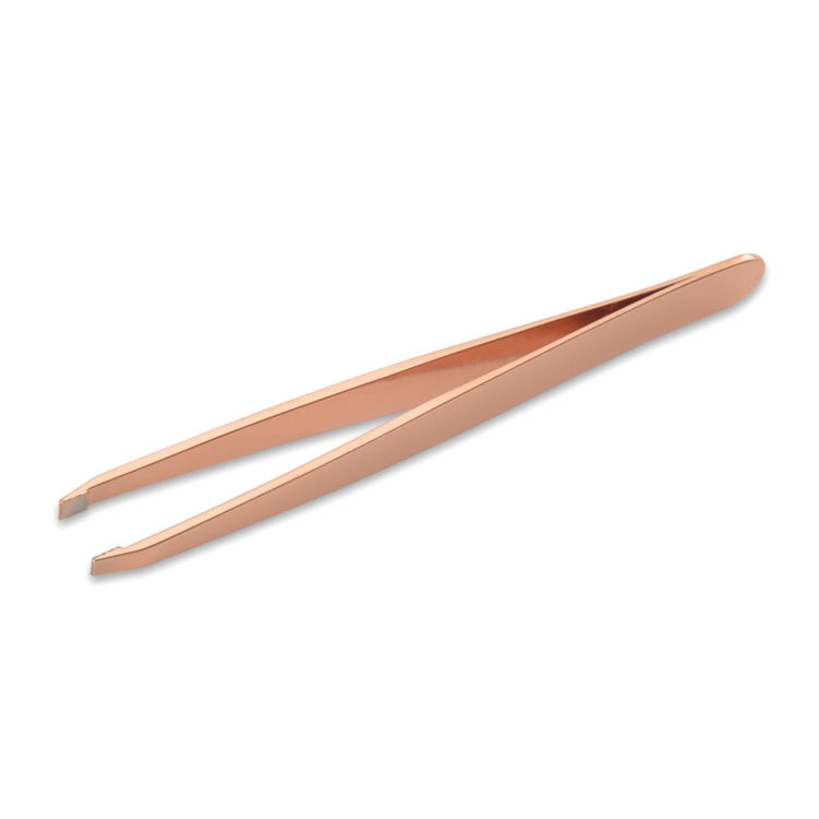 Pince à épiler inclinée en acier inoxydable couleur or, étiquette privée OEM, pince à épiler de précision, vente en gros de qualité supérieure