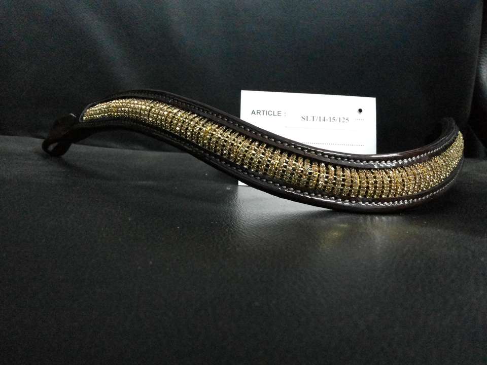 Bandeau à sourcils en cristaux dorés avec chaîne Halters en cuir marron Accessoires élégants pour chevaux