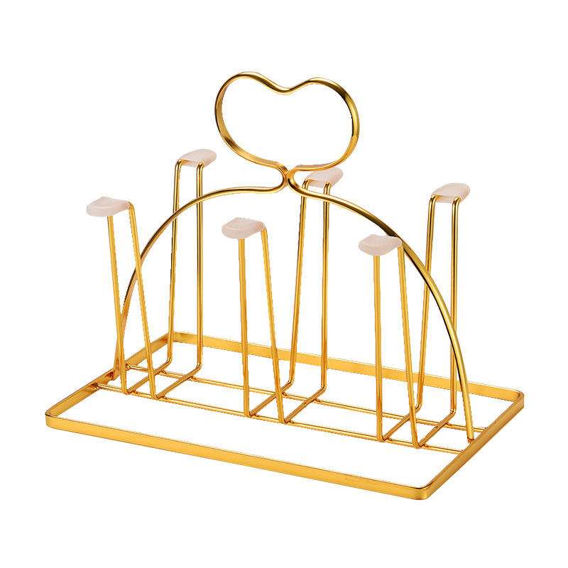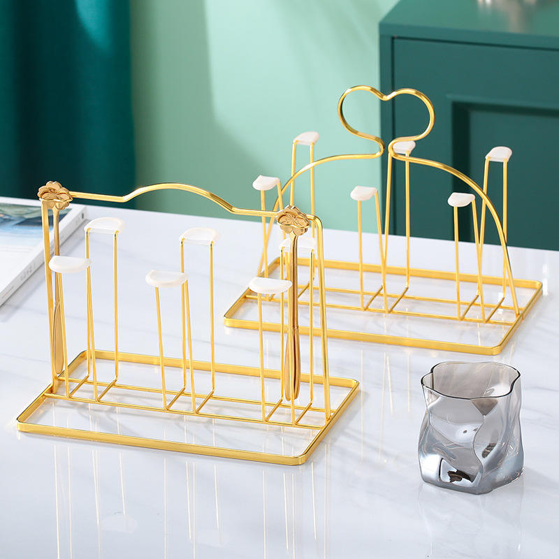Support à tasses doré en fer, égouttoir carré au design moderne pour le rangement des tasses domestiques, idéal pour le salon