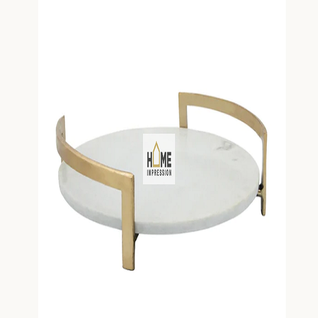 Plateau de luxe en marbre, poignées personnalisées, en or rose décorations, plateaux en marbre